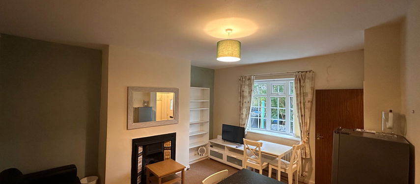 This light, bright room has sofa, digital widescreen TV, dining table and modern furnishings. Finished to a high standard